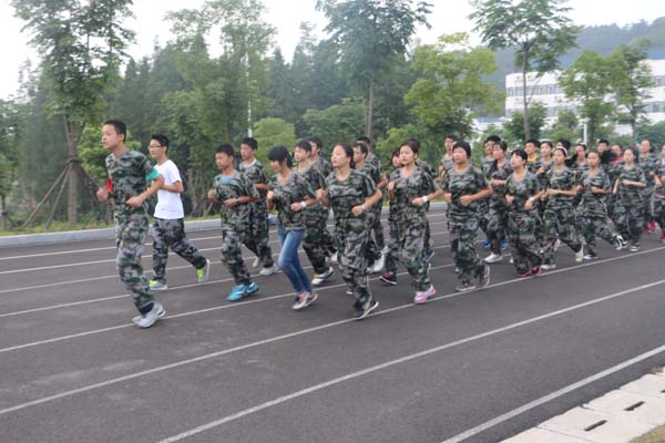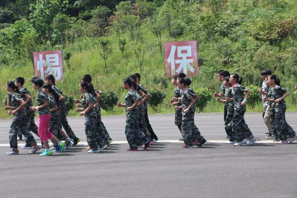 一直以来坐着专心学习读书的我们到了这里,虽说可能会有很多不适应,但是我们也尽量尝试着去克服它,战胜它。训练很累,我们努力坚持、超越极限。教官很辛苦,烈日炎炎下带着我们一遍又一遍的练习,我们衷心的感谢他。