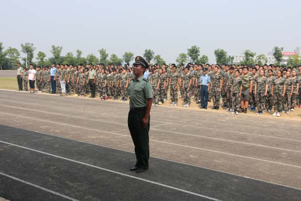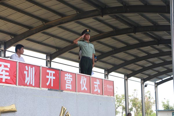 二0一四年八月十五日下午14:30,在威严雄壮的国歌声中,军训开营仪式正式开始。徐校长首先发表热情洋溢的讲话,对新生的到来表示热烈的欢迎,同时向全体教官们表示衷心的感谢和崇高的敬意。主教官也代表全体教官发言,他表示在本次军训中,所有教官将会尽职尽责让同学们掌握军人基本队列动作。同时也希望同学们能够把自己当成一名严格的军人,在军训中不怕累不怕苦,学会关心他人、关心集体,深刻体会战友情、同学情。