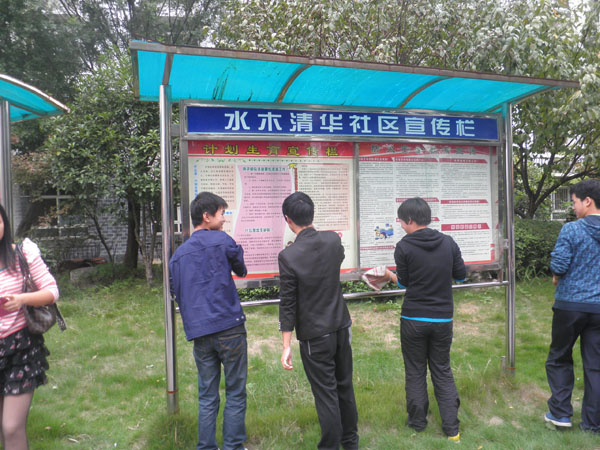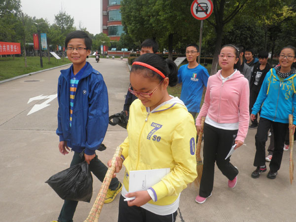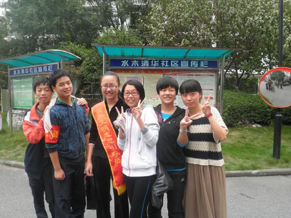 我校充分利用社区教育资源,除参加上级教育行政部门规定的社会实践活动之外,还建立水木清华社区教育基地,以志愿服务,实地参观调查等形式,培养学生走进社会、珍爱生命、关爱他人,通过角色体验丰富人生意义的感悟。图为2013年9月29日,部分高一志愿者到水木清华社区教育基地参加劳动。