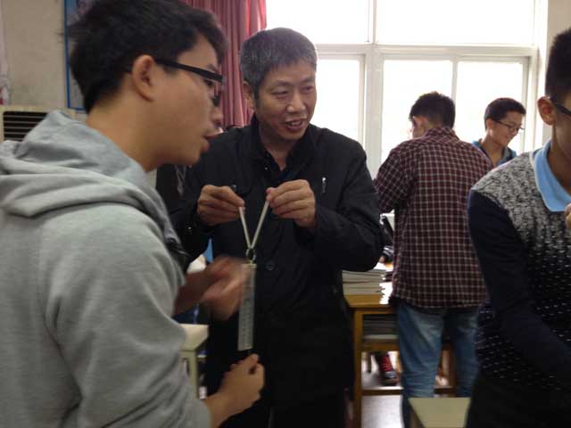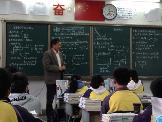 10月29日上午8:30,在学校教学部门的盛情邀请下,武汉市物理学会会长、高中物理特级教师何文浩老师冒雨来校指导。何老师一到学校,就在徐学海校长、朱先平副校长的陪同下,与开发区一中物理老师一起听了高三许传正老师主讲的物理复习课《滑动变阻器的使用和伏安法测电阻》和高一年级白庆然老师主讲的新课《力的分解》。两位老师充分利用学校“两主四环”高效课堂教学模式,将自主学习、小组合作、质疑探究灵活运用,课堂气氛十分热烈,徐学海校长还亲自参与学生实验并启发学生动脑动手。在此氛围的感染性,何文浩老师上午第四节课亲自走上讲台,为高三(12)班学生上了一节高效的实验复习课。何老师整洁的板书,幽默的语言,紧扣高考热点重点的精辟总结和高屋建瓴的归纳让一中物理教师叹为观止,深受启发,也让学生受益匪浅,给一中教师和学生充分展现了名师风采。