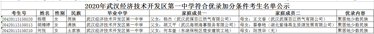 2020年武汉开发区一中符合优录加分条件考生名单公示