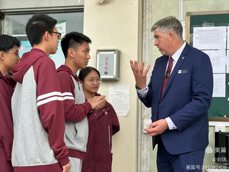 2024年11月8日上午,来自新西兰Kaiapoi High School(译:卡亚波伊)高中校长Jason Reid 先生,国际部主任白宇先生在区教育局副局长周鸣、综合教育科主任田守凤、国际教育人员郭敏姗的陪同下,来到我校交流访问。
