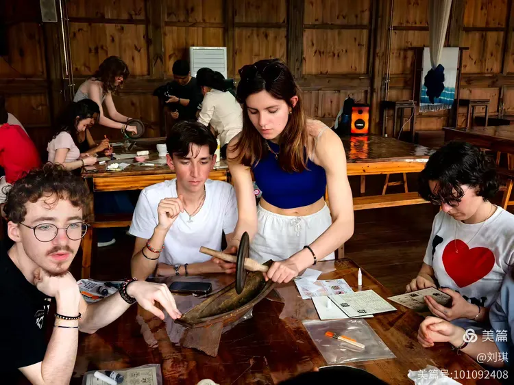 4月6日,法国小伙伴们沉浸在中国非遗传统手工艺的世界里。在老师的指导下,大家用天然大漆创作独一无二的漆扇,还尝试了串珠手链,感受东方美学的细腻与精致。