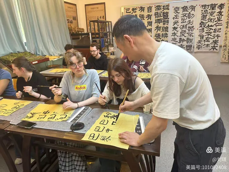 杨春宏老师手把手教法国学生练书法!
