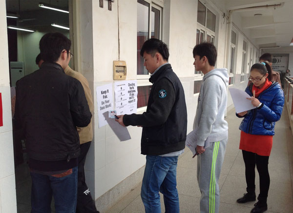 2013年12月14日上午8点,我校GAC中心的所有学子们迎来了第二次美国高考ACT同步考试。在经过一个多月紧张的备考之后,学生们一个个镇定的走进考场。也衷心的希望全体学员在长达一年的全英文环境的学习之后给自己和家长们都交上一份满意的答卷。